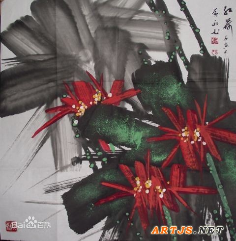 的那种残荷就有一种孤傲于世的感觉。但是黄永玉画的荷花,没有给人那种非常清高、出世的感觉,而是一种很绚丽、很灿烂的气质。黄永玉开玩笑说荷花从哪儿长