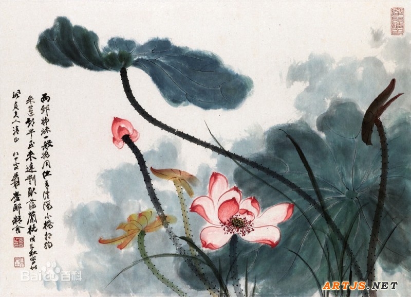 泼彩、泼彩墨艺术,同时还改进了国画宣纸的质地,然而思想的先行者往往是孤独的,在他五言绝句《荷塘》有“先生归去后,谁坐此船来”之句,似乎暗示着后来者继续他的道路。