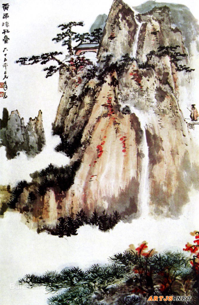 在大千游历过的名山大川中,他始终把黄山推为第一,曾三次登临。大千之所以偏爱黄山,主要来自于石涛的影响,黄山既为石涛之